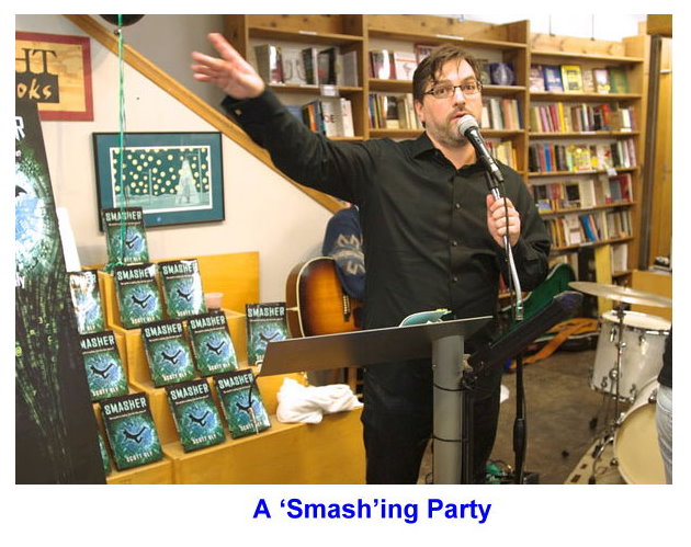 Skylight Books in Los Angeles hosted the March 28 release party for Scott Bly’s debut novel, Smasher (Scholastic/Blue Sky). About 120 people attended the multimedia event. After Bly discussed his book with the audience, a local indie rock band, Derde Verde, performed, and MadTV veteran Orlando Jones chimed in via video to congratulate his author friend.